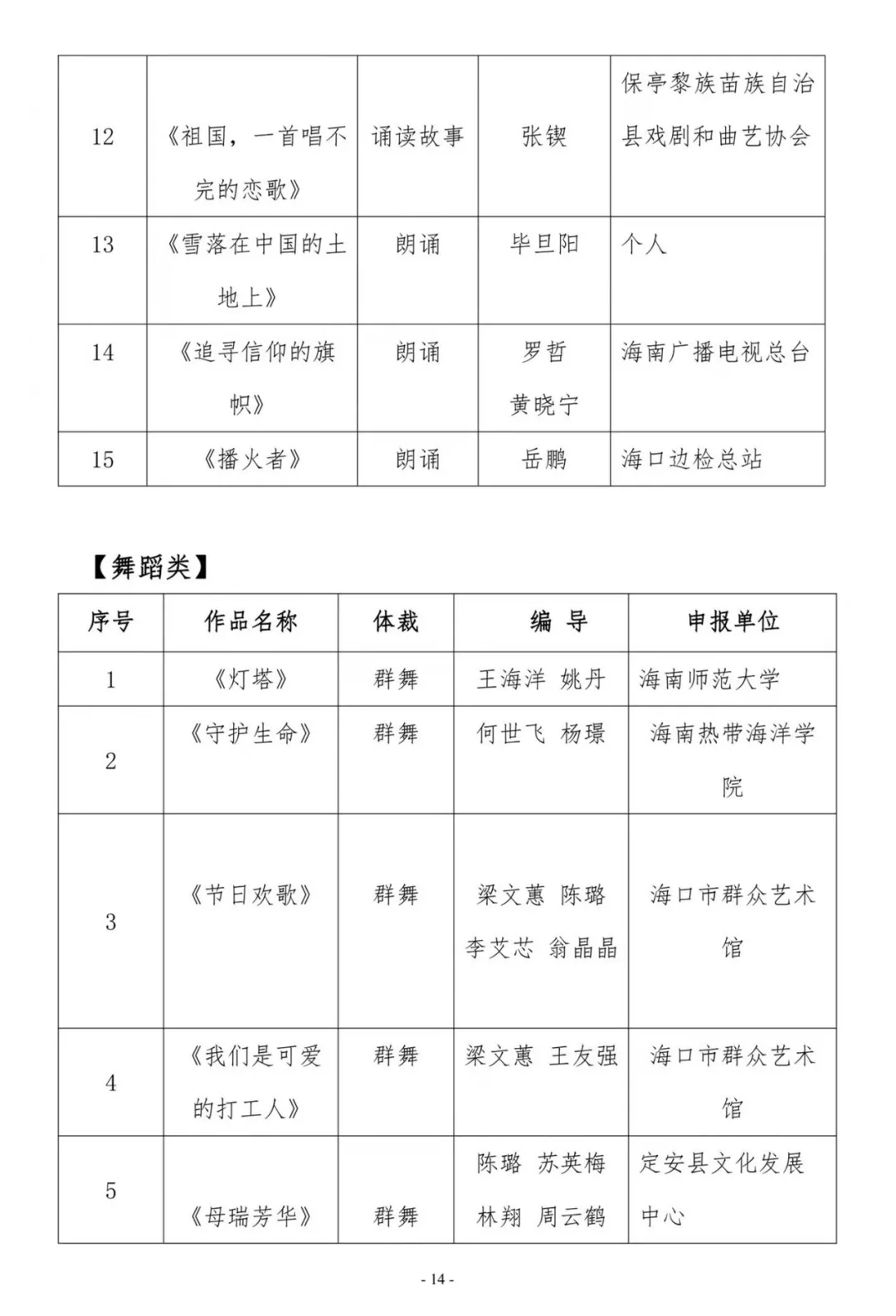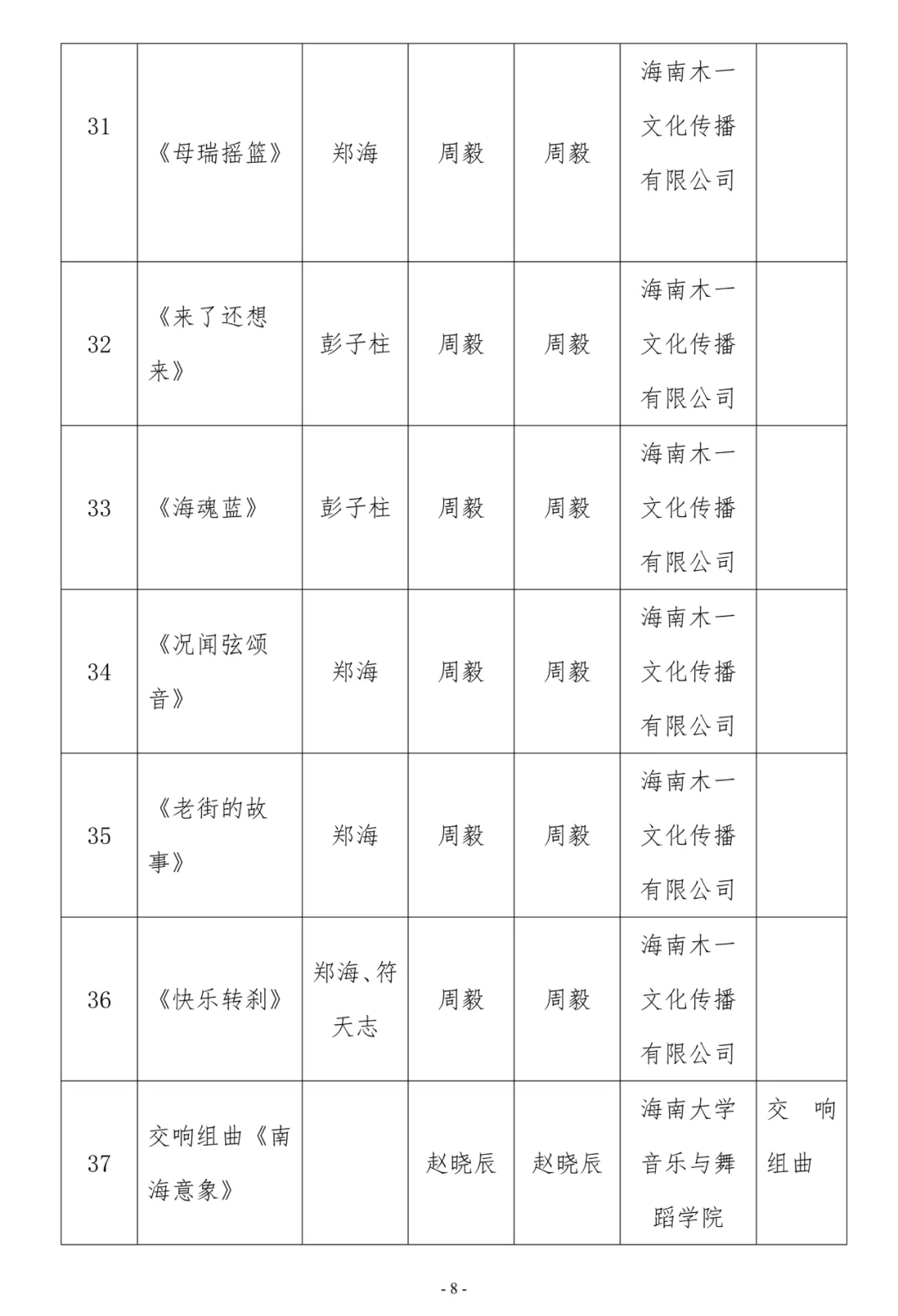 按照海南省文学艺术界联合会《第四届海南省南海文艺奖评奖实施方案》评奖程序要求,第四届海南省南海文艺奖评审办公室对各文艺门类初审办报来的申报作品目录进行了审核,现将申报参评作品目录公示如下。